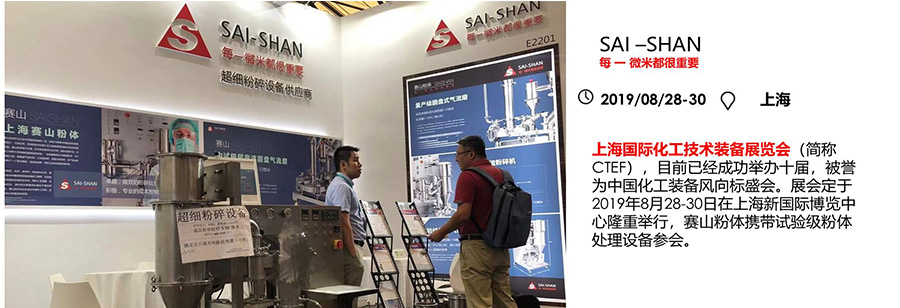 上海国际化工技术装备展览会(简称CTEF),目前已经成功举办十届,被誉为中国化工装备风向标盛会。展会定于2019年8月28-30日在上海新国际博览中心隆重举行,赢多多粉体携带试验级粉体处理设备参会。